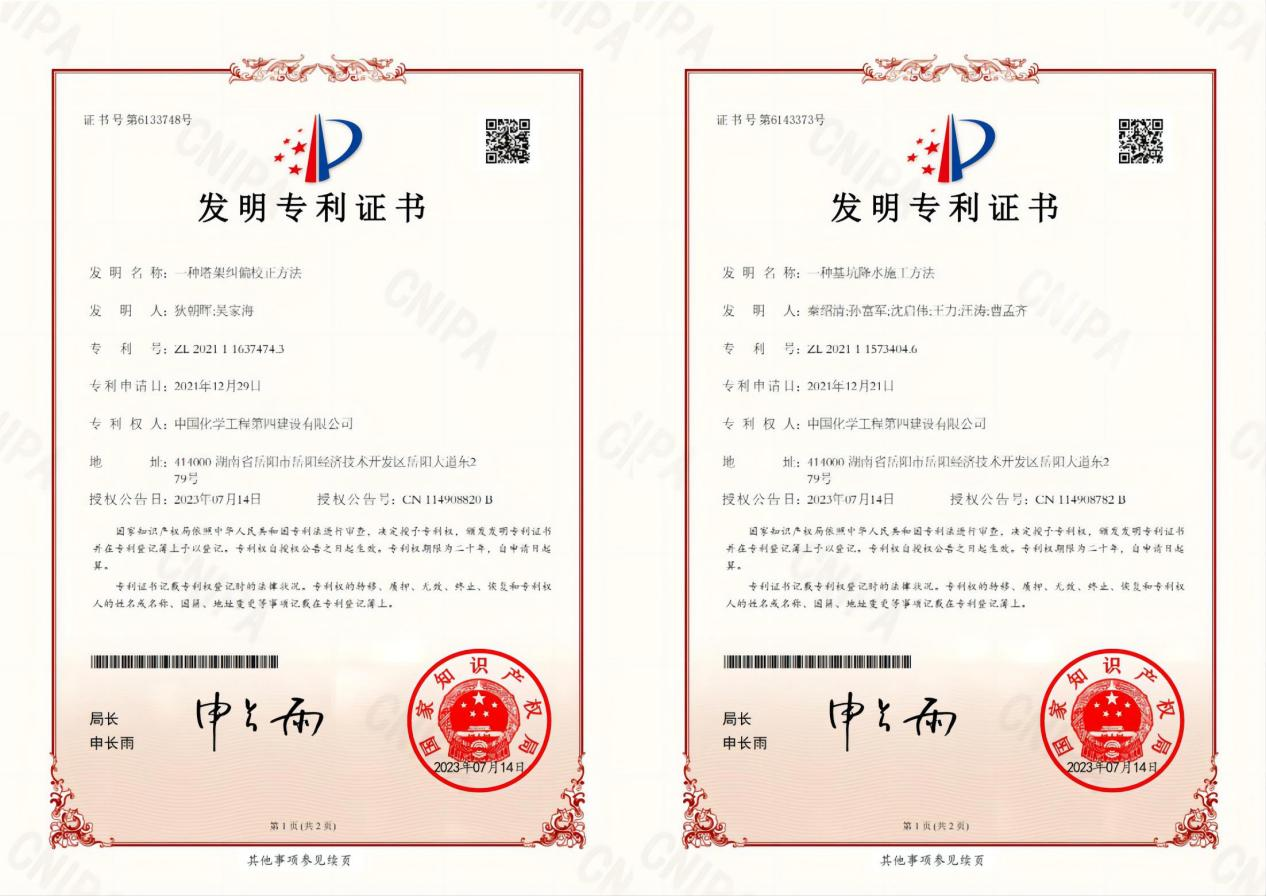 近日,從國家知識(shí)產(chǎn)權(quán)局傳來喜訊,公司新獲兩項(xiàng)發(fā)明專利。其中專利“一種塔架糾偏校正方法”,發(fā)明人為華東公司狄朝暉、吳家海,專利號(hào)ZL202111637474.3;專利“一種基坑降水施工方法”,發(fā)明人為華東公司秦紹清、孫富軍、沈啟偉、王力、汪濤、曹孟齊,專利號(hào)ZL202111573404.6。
