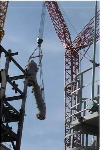 近日,內(nèi)蒙古世林化工4×30萬噸/年煤制甲醇中國自主知識產(chǎn)權(quán)兩段式干煤粉加壓氣化示范爐的吊裝儀式在工程現(xiàn)場舉行。此活動由世林化工有限責任公司主辦。西安熱工研究院、五環(huán)設(shè)計院、杭州鍋爐公司、中石化寧波工程公司、四化建西北分公司以及鄂爾多斯、烏審旗等市旗的領(lǐng)導和現(xiàn)場人員均參加了儀式。該氣化爐由西安熱工研究院自主研發(fā)設(shè)計、杭州鍋爐公司制造,系中國自主知識產(chǎn)權(quán)的首臺示范爐。其爐體總重600多噸,分上下兩段吊裝,上午10點,現(xiàn)場啟用1250噸履帶式起重機起吊,吊裝高度38米,整個吊裝不到1小時,就將氣化爐的300多噸上段部分與框架內(nèi)的下段部分穩(wěn)妥就位。該爐的就位為配置附爐管線、加快施工進度贏得了時間。