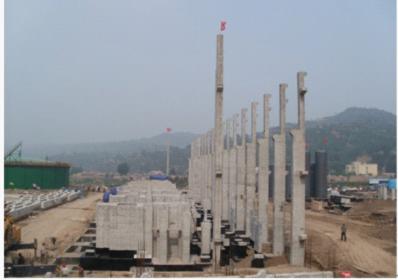 根據(jù)設(shè)計(jì)要求,焦?fàn)t氣壓縮機(jī)廠房所有水泥立柱均采用混泥土一次性預(yù)制,最后整體吊裝。每根水泥柱長(zhǎng)約19米,重達(dá)26噸,因其水泥柱上部有不規(guī)則的牛腿,增加了吊裝難度。項(xiàng)目部精心組織,主導(dǎo)施工隊(duì)、吊裝公司、業(yè)主連同監(jiān)理各方積極協(xié)調(diào)聯(lián)系,制訂了嚴(yán)密的吊裝計(jì)劃,采用160噸吊車進(jìn)行主吊裝,50噸吊車同時(shí)遛尾,并配備了經(jīng)驗(yàn)豐富的吊裝總指揮,施工總工親自在現(xiàn)場(chǎng)進(jìn)行技術(shù)支持。