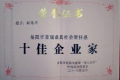 公司榮獲岳陽(yáng)市首屆學(xué)雷鋒“愛(ài)心100”企業(yè)榮譽(yù)稱(chēng)號(hào)