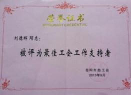 9月30日,在岳陽市總工會(huì)召開的第六屆代表大會(huì)上傳出喜訊。公司工會(huì)榮獲“岳陽市先進(jìn)基層工會(huì)”,公司黨委書記、董事長劉德輝被岳陽市總工會(huì)授予“岳陽市最佳工會(huì)工作支持者”榮譽(yù)稱號(hào),公司楊艷被岳陽市總工會(huì)授予“岳陽市優(yōu)秀工會(huì)工作者”榮譽(yù)稱號(hào)。