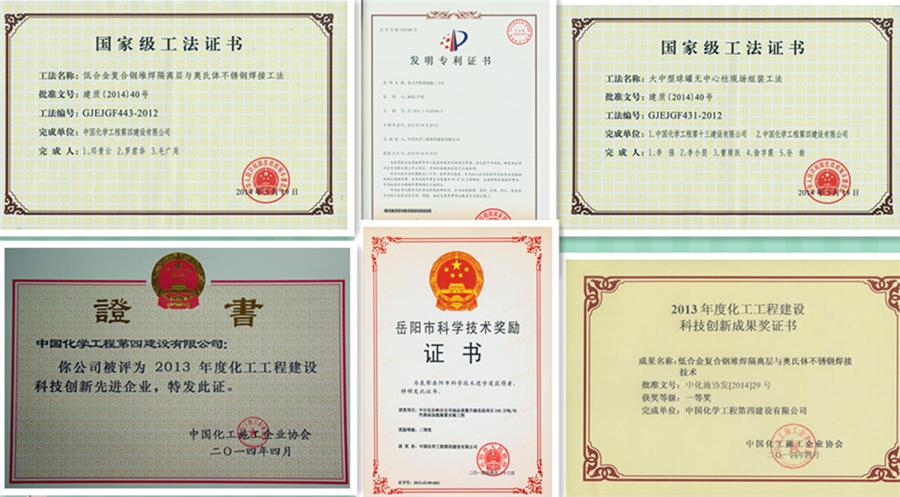 在這春暖花開的日子里,從國(guó)家知識(shí)產(chǎn)權(quán)局、建設(shè)部、岳陽(yáng)市科技局等傳來(lái)陣陣喜訊:建筑工程分公司嚴(yán)偉申報(bào)的“復(fù)式冷箱基礎(chǔ)施工方法”和西北分公司羅長(zhǎng)彪申報(bào)的“托普索徑流合成塔催化劑裝填配套機(jī)具”被國(guó)家知識(shí)產(chǎn)權(quán)局授權(quán)為國(guó)家發(fā)明專利和實(shí)用新型專利;“低合金復(fù)合鋼堆焊隔離層與奧氏體不銹鋼焊接工法”和“大中型球罐無(wú)中心柱現(xiàn)場(chǎng)組裝工法”榮獲由中華人民共住房和城鄉(xiāng)建設(shè)部頒發(fā)的國(guó)家級(jí)工法證書;“中石化長(zhǎng)嶺分公司油品質(zhì)量升級(jí)改造項(xiàng)目240萬(wàn)噸年汽柴油加氫裝置安裝工程”榮獲由岳陽(yáng)市政府頒發(fā)的重大工程科技成果二等獎(jiǎng);“低合金復(fù)合鋼堆焊隔離層與奧氏體不銹鋼焊接技術(shù)”榮獲由中國(guó)化工施工企業(yè)協(xié)會(huì)頒發(fā)的2013年度化工工程建設(shè)科技創(chuàng)新成果一等獎(jiǎng);公司榮獲2013年度全國(guó)化工工程建設(shè)科技創(chuàng)新先進(jìn)企業(yè)光榮稱號(hào)。