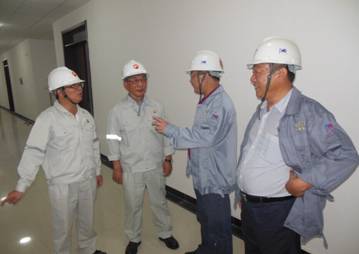 7月17日上午,中煤蒙大項(xiàng)目總包方廣東寰球董事長(zhǎng)王偉、現(xiàn)場(chǎng)項(xiàng)目經(jīng)理金柏祥,公司總經(jīng)理胡流芳,在項(xiàng)目經(jīng)理欒立超等陪同下,對(duì)華北分公司所承建的四個(gè)單體、全廠管廊進(jìn)行檢查指導(dǎo)。