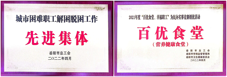 4月8日,岳陽市總工會召開2022年度工作會議,公司工會榮獲“2021年度先進單位”“城市困難職工解困脫困工作先進單位”,公司四化大廈食堂獲“湖南省級提名獎”“岳陽市百優(yōu)食堂(營養(yǎng)健康食堂)”,在會上予以表彰獎勵。