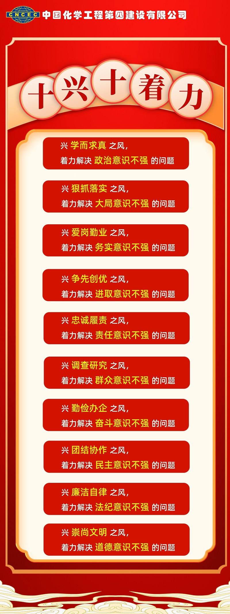 活動通知中針對公司職工在工作中存在的思想、責(zé)任、作風(fēng)三個“不在線”問題,明確了作風(fēng)建設(shè)重點(diǎn)治理的總體目標(biāo),以支部為單位,組織開展“能力作風(fēng)建設(shè)”大討論,努力實(shí)現(xiàn)“十興十著力”目標(biāo)。從今天起,公司將對“十興十著力”目標(biāo)進(jìn)行深入解讀。