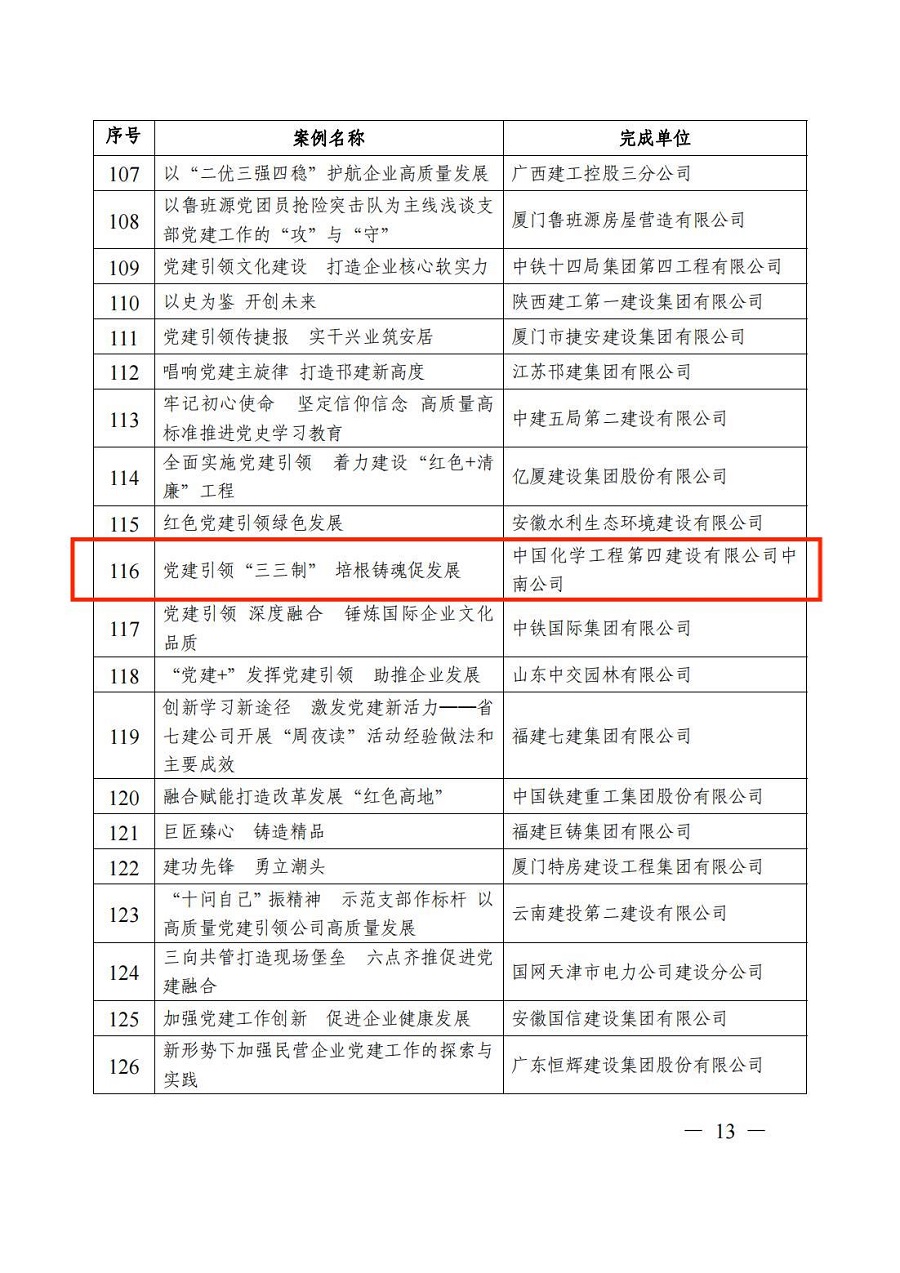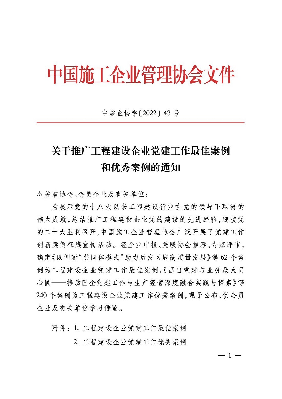 公司2項(xiàng)黨建工作案例獲評(píng)“工程建設(shè)企業(yè)黨建工作優(yōu)秀案例”
