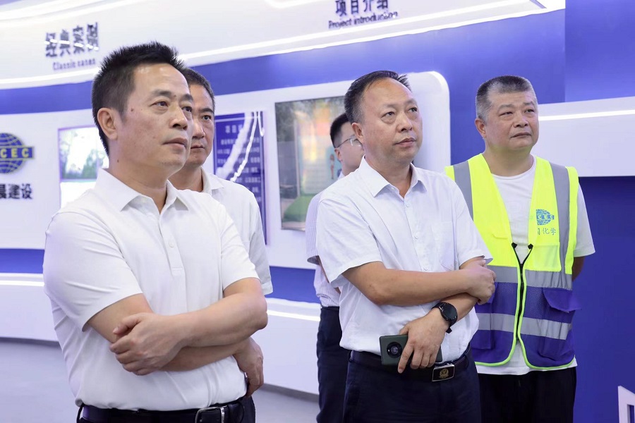 汪濤一行到EOD項目智慧工地展廳,查看項目近期建設進展情況,聽取了關于項目智慧工地的各項技術應用和智慧監(jiān)管平臺建設工作的匯報。