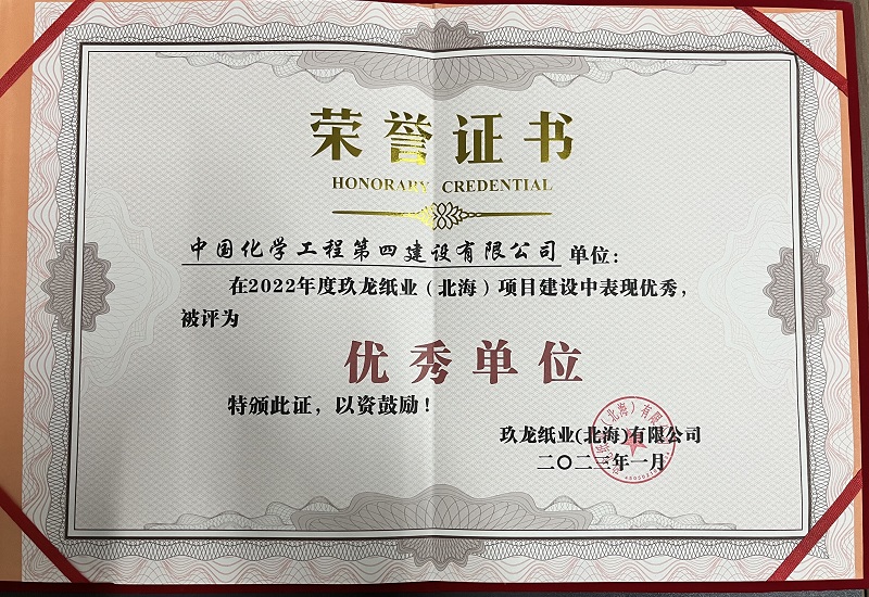 西部公司北海玖龍紙業(yè)項(xiàng)目部獲評(píng)優(yōu)秀單位稱號(hào)