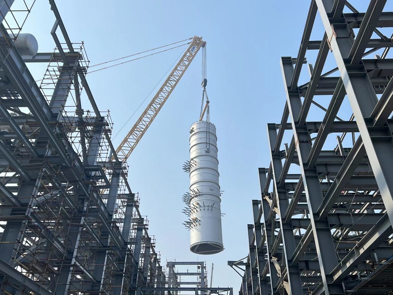 大連恒力石化新材料項目苯酚丙酮裝置大件設備完成吊裝