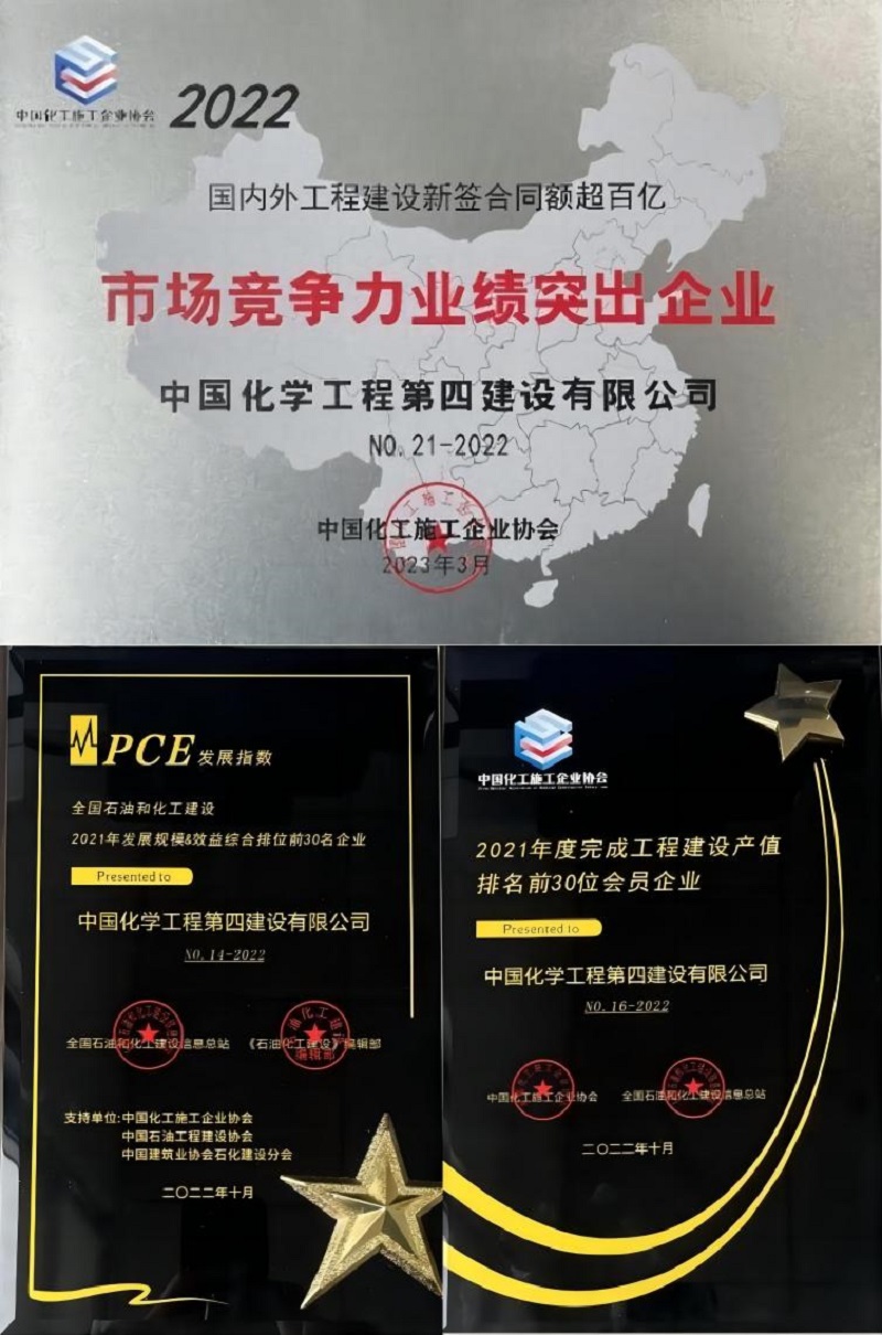 近日,從中國化工施工企業(yè)協(xié)會(huì)2023年年會(huì)暨第十屆六次理事會(huì)傳來喜訊,公司獲得多項(xiàng)榮譽(yù),被授予“2022年國內(nèi)外工程建設(shè)新簽合同額超百億市場競爭力業(yè)績突出企業(yè)”“全國石油和化工建設(shè)2021年發(fā)展規(guī)模&效益(PCE發(fā)展指數(shù))綜合排名前30名企業(yè)”和“2021年度完成工程建設(shè)產(chǎn)值排名前30位會(huì)員企業(yè)”。
