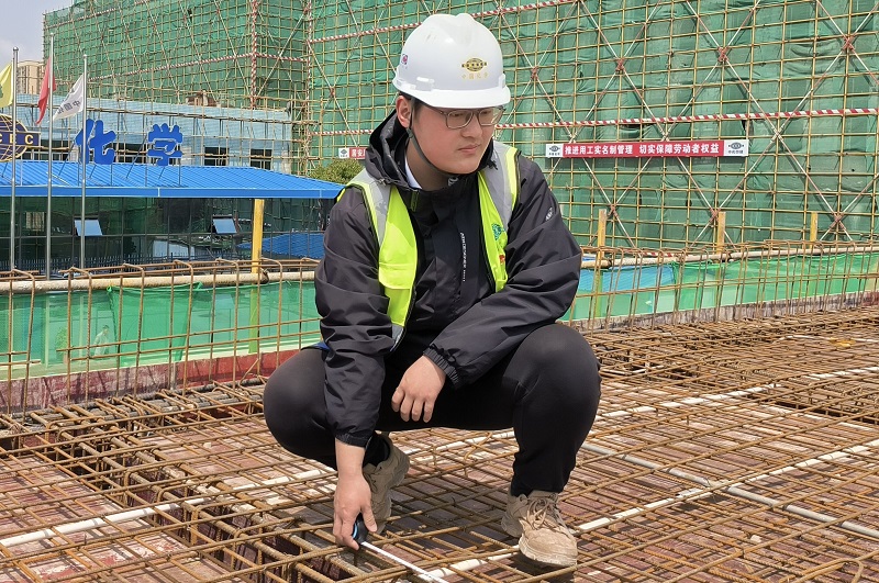 青年突擊隊不僅是“突擊隊”“生力軍”,還是項目“人才學(xué)?!?。青年突擊隊隊員張豪元是2022年入職的大學(xué)生,因為工作經(jīng)驗不足,他便堅守施工現(xiàn)場,向前輩們請教專業(yè)問題。在最熱的9、10月份,張豪元每日扛著儀器放線測標高,踏著朝陽出,伴著群星歸,一身干爽的衣服走到現(xiàn)場就已全部濕透,在不趕工期的晚上,他就學(xué)習(xí)二建課程。張豪元從小在北方長大,不太適應(yīng)南方的暴曬悶熱和辣口飯菜,整個人黑了也瘦了。