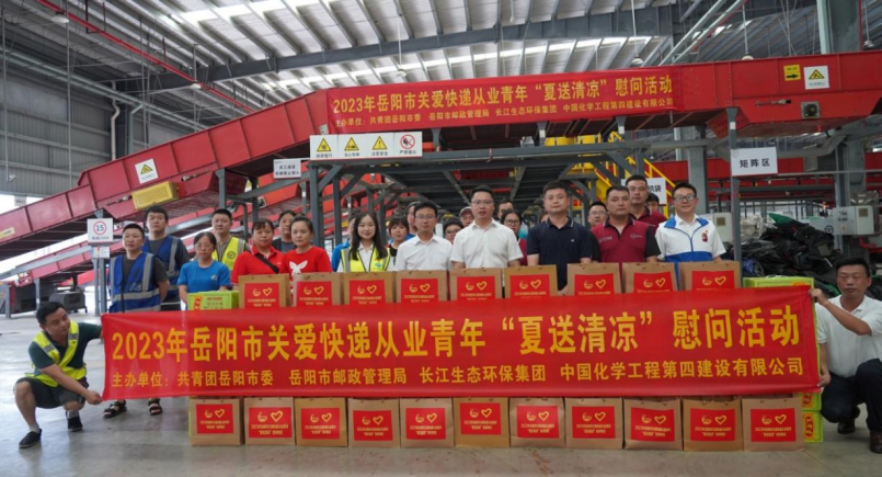 7月18日下午,公司聯(lián)合岳陽團(tuán)市委、市郵政管理局、長江生態(tài)環(huán)保集團(tuán)在科德物流園開展2023年關(guān)愛快遞從業(yè)青年“夏送清涼”慰問活動。共青團(tuán)岳陽市委書記綦小廣、岳陽市郵政管理局局長殷宏亮出席慰問活動。長江生態(tài)環(huán)保集團(tuán)湖南區(qū)域公司黨群工作部、公司團(tuán)委、岳陽污水治理項目部相關(guān)負(fù)責(zé)人員參加慰問活動。