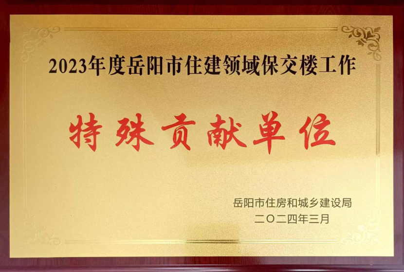3月11日,在岳陽市住建局召開的全市住房城鄉(xiāng)建設(shè)工作會(huì)議上,公司榮獲2023年度岳陽市住建領(lǐng)域保交樓工作“特殊貢獻(xiàn)單位”稱號。