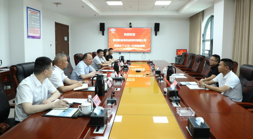 6月3日,公司黨委書記、董事長周鴻在公司總部會見深圳安品有機硅材料有限公司董事長丁小衛(wèi)一行,雙方就項目合作相關事宜進行了深入交流。