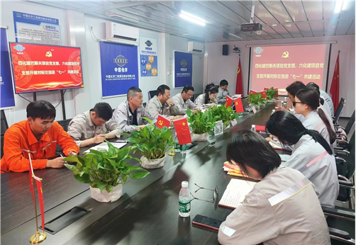6月26日,公司湛江一體化項(xiàng)目黨支部聯(lián)合六化建湛江項(xiàng)目黨支部開展“對標(biāo)交流迎‘七一’”聯(lián)學(xué)共建活動?;顒又?,雙方分別介紹了各自黨支部情況、黨建特色活動以及黨建示范點(diǎn)創(chuàng)建工作開展情況,交流了開展黨紀(jì)學(xué)習(xí)教育的經(jīng)驗(yàn)做法,圍繞“抓黨建促業(yè)務(wù),以業(yè)務(wù)強(qiáng)黨建”主題進(jìn)行交流探討。隨后,兩家黨支部共同開展主題黨日活動,觀看紅色影片、重溫入黨誓詞,激勵(lì)全體黨員堅(jiān)定理想信念,爭做時(shí)代先鋒,以實(shí)際行動在項(xiàng)目一線踐行誓言譜寫新篇。