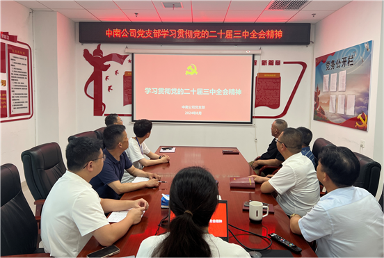 近日,中南公司黨支部召開理論學習會,傳達學習黨的二十屆三中全會精神。會議強調(diào),要深刻領會和把握進一步全面深化改革的主題、重大原則、重大舉措、根本保證,把學習貫徹全會精神與做好當前重點工作結合起來,堅持目標導向、問題導向,以釘釘子精神抓好重大改革任務貫徹落實,在公司高質(zhì)量發(fā)展進程中勇當先行者、譜寫新篇章、作出新貢獻。