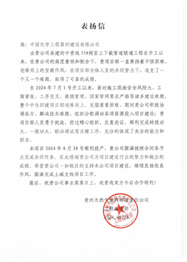 近日,西部公司收到貴州天然氣管網(wǎng)有限責(zé)任公司發(fā)來的表揚(yáng)信,對項(xiàng)目部按照合同各節(jié)點(diǎn)目標(biāo)圓滿完成任務(wù)給予高度贊揚(yáng)。