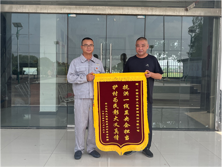 近日,君山區(qū)良心堡鎮(zhèn)望君洲村村民帶著“抗洪一線顯央企擔(dān)當(dāng),護(hù)村為民彰大義真情”的錦旗來到市政工程公司錢糧湖垸第三道防線工程項(xiàng)目部,對公司在團(tuán)洲垸抗洪搶險關(guān)鍵時刻挺身而出,全力以赴、盡銳出戰(zhàn),奮力完成防汛搶建任務(wù)表示感謝。
