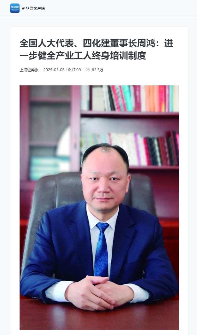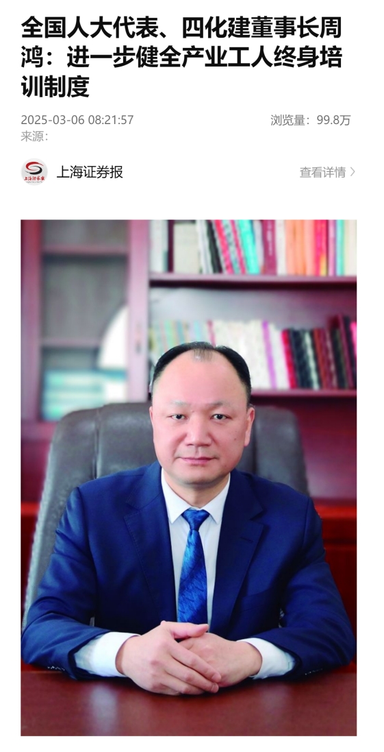 3月6日,證券時(shí)報(bào)客戶端以“堅(jiān)持產(chǎn)教融合 鍛造高素質(zhì)產(chǎn)業(yè)人才隊(duì)伍”為題報(bào)道周鴻的建議:進(jìn)一步健全產(chǎn)業(yè)工人終身培訓(xùn)制度。