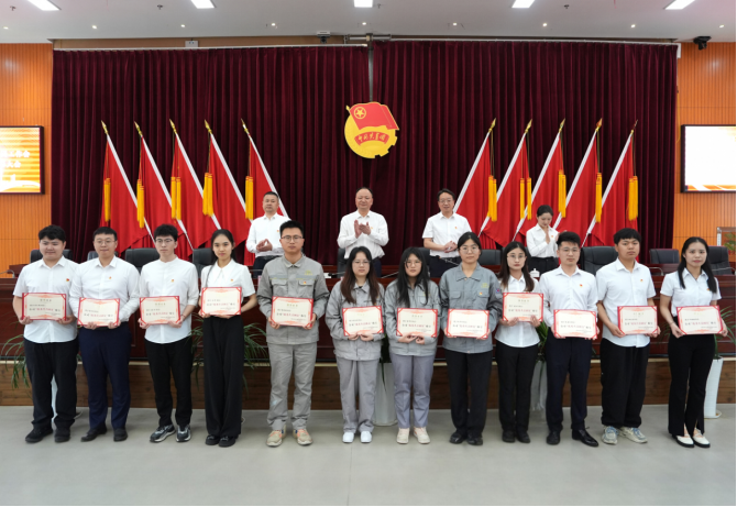 唐文方宣讀《關(guān)于表彰公司共青團2024年度“五四”先進集體和個人的決定》。在熱烈的掌聲中,公司領(lǐng)導為獲獎代表頒發(fā)榮譽證書和獎牌,激勵青年立足崗位再創(chuàng)佳績。