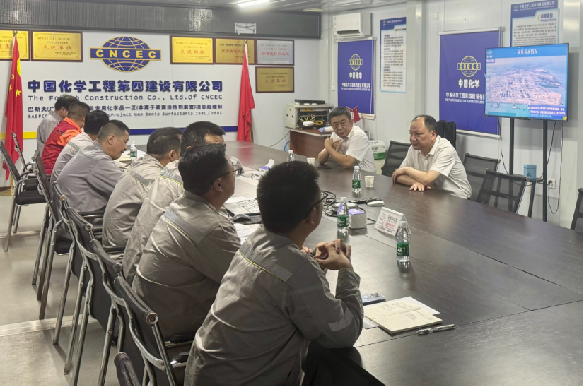 8月18日,中國(guó)化學(xué)四化建黨委書記、董事長(zhǎng)周鴻深入湛江一體化項(xiàng)目調(diào)研指導(dǎo)工作。公司副總經(jīng)理陳岳剛參加調(diào)研。
