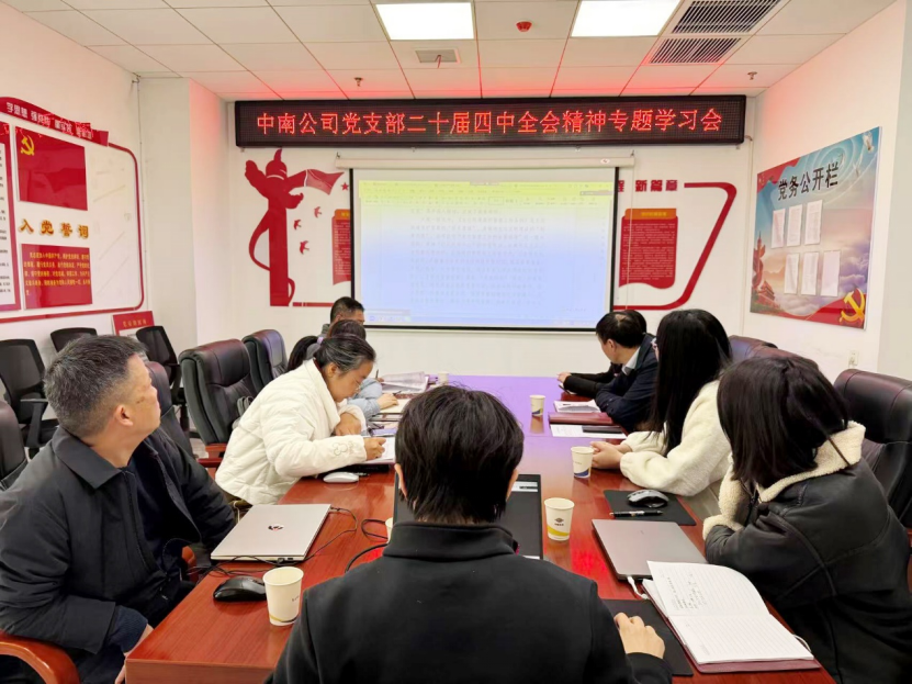 近日,中南公司黨支部組織召開黨的二十屆四中全會精神專題學習會,深刻領(lǐng)會全會精神實質(zhì),切實把思想和行動統(tǒng)一到黨中央決策部署上來。會議明確,要以貫徹執(zhí)行為重要抓手,推動全會精神深度融入經(jīng)營管理各環(huán)節(jié);以創(chuàng)新驅(qū)動為突破路徑,聚焦技術(shù)攻堅與成果轉(zhuǎn)化提質(zhì)效;以精益管控為堅實支撐,筑牢企業(yè)高質(zhì)量發(fā)展的品質(zhì)根基。同時,錨定重點項目攻堅主戰(zhàn)場,引領(lǐng)全體黨員干部在施工一線主動亮身份、鄭重踐承諾、帶頭作表率,切實將學習貫徹成效轉(zhuǎn)化為工程品質(zhì)升級、企業(yè)效益攀升、改革發(fā)展提速的實際成果,為“十五五”規(guī)劃落地見效筑牢實踐根基、彰顯中南作為。