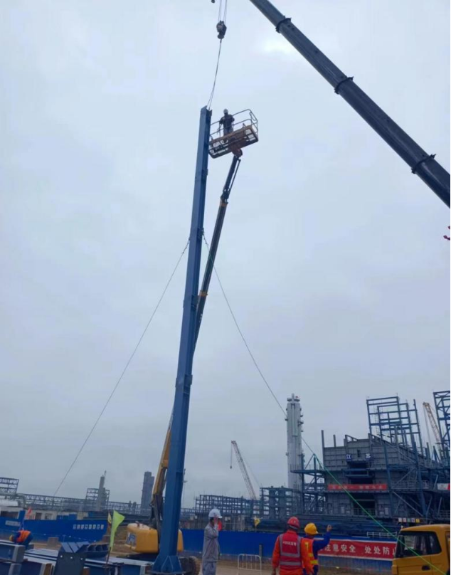 此次吊裝難度大,最大塔高度49米,穿衣戴帽后最大重量195噸。為組織好這兩臺(tái)塔器的吊裝工作,項(xiàng)目施工人員對(duì)設(shè)備吊裝過(guò)程的每一步“精打細(xì)算”,吊裝嚴(yán)格按照方案執(zhí)行并進(jìn)行技術(shù)交底。吊裝期間,項(xiàng)目主要管理人員堅(jiān)守現(xiàn)場(chǎng),對(duì)設(shè)備吊裝情況實(shí)時(shí)監(jiān)督,直至塔器順利安裝就位。此次吊裝,獲得監(jiān)理業(yè)主一致認(rèn)可,為后續(xù)施工打下了堅(jiān)實(shí)基礎(chǔ)。
