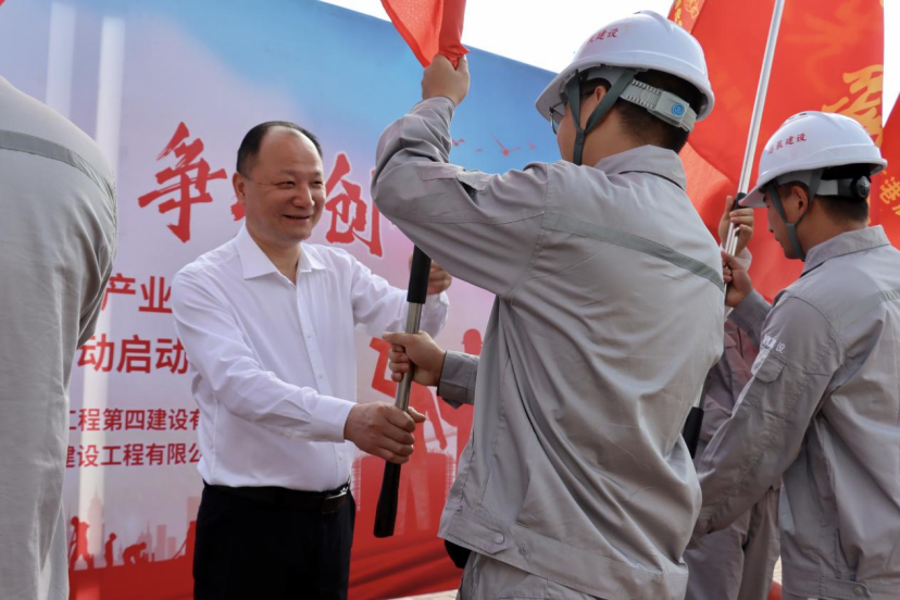 5月24日,公司在岳陽(yáng)自貿(mào)片區(qū)數(shù)字經(jīng)濟(jì)產(chǎn)業(yè)綜合體建設(shè)項(xiàng)目舉行2023年度勞動(dòng)競(jìng)賽啟動(dòng)儀式,吹響“爭(zhēng)先創(chuàng)一流,決戰(zhàn)決勝實(shí)現(xiàn)百億化建目標(biāo)”大干號(hào)角。公司黨委書(shū)記、董事長(zhǎng)周鴻,工會(huì)主席、監(jiān)事會(huì)主席胥正旺出席儀式,并為項(xiàng)目部“工人先鋒隊(duì)”“黨員先鋒隊(duì)”和“青年突擊隊(duì)”進(jìn)行授旗。公司相關(guān)部門(mén)、港晨公司和項(xiàng)目部共140余人參加。