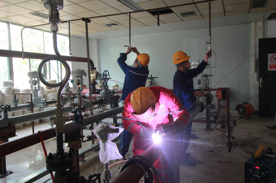 據(jù)了解,此次搶工包括11套流量計安裝,4套減溫減壓閥組裝,真空泵管道改建、上百組閥門安裝等。為確保優(yōu)質(zhì)高效完成施工任務(wù),項目克服人員不足、施工組織困難和疫情防控等不利因素,歷經(jīng)24小時連續(xù)施工,在9月21日圓滿完成改建管道的拆除、恢復、回裝、試壓、吹掃及監(jiān)檢工作。
