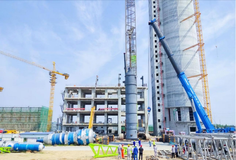華北公司河南晉開延化項目大型設(shè)備吊裝就位