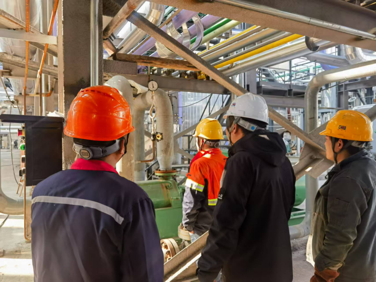 該項(xiàng)目位于福建省龍巖市上杭縣。為按期實(shí)現(xiàn)試壓節(jié)點(diǎn)目標(biāo),項(xiàng)目部提前籌劃施工資源配置,科學(xué)編制試壓方案,通過(guò)制作多條臨時(shí)支管串聯(lián)試壓、使用更大功率壓力泵等措施,成功克服干吸工段設(shè)備之間單獨(dú)主線較多、余熱工段管線較長(zhǎng)、試驗(yàn)壓力較高等諸多困難。在試壓過(guò)程中,項(xiàng)目團(tuán)隊(duì)嚴(yán)格落實(shí)安全和技術(shù)交底制度,全程對(duì)管線的試驗(yàn)介質(zhì)、試驗(yàn)壓力和穩(wěn)壓時(shí)間進(jìn)行精確把控,確保順利完成管道試壓工作